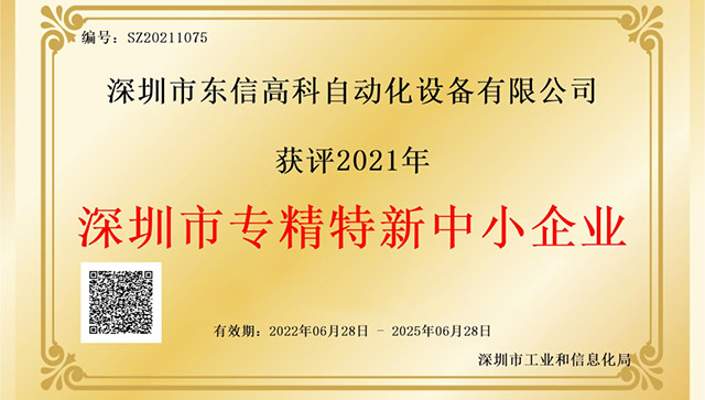 熱烈祝賀我司獲評2021深圳市專精特新中...